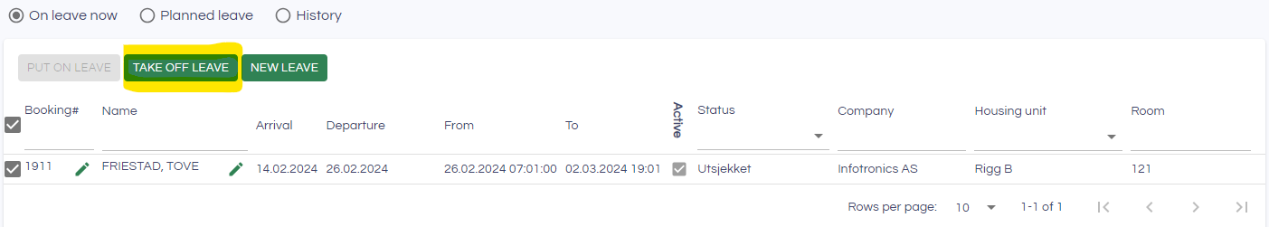 To end leaves from the leave list, select the leaves to be finished and press "Take off leave".