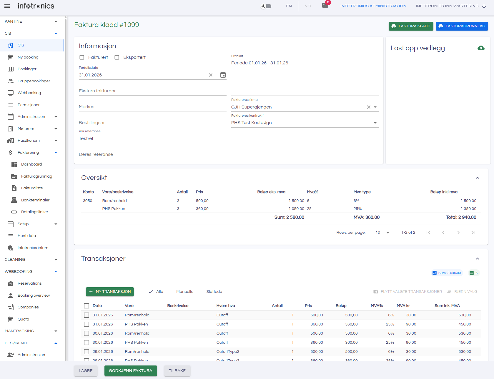 - Klikk Godkjenn faktura for å bekrefte.